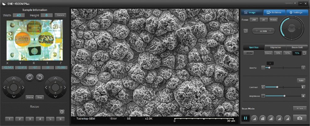 汎用電子顕微鏡のモジュールを小型化し、最大15万倍まで画像が観察できる高性能仕様の廉価版SEM。